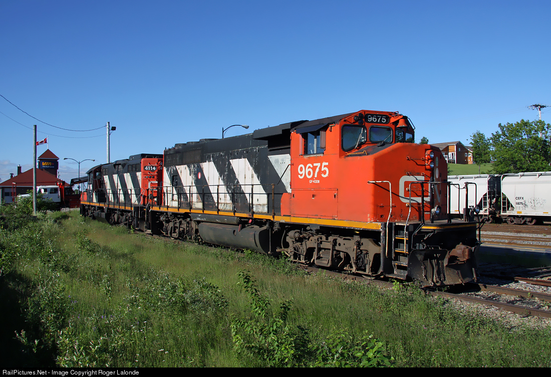 CN GMD GP40-2(W) 9675, nee GO 708 with CN GP9RM 4114 former 4293.