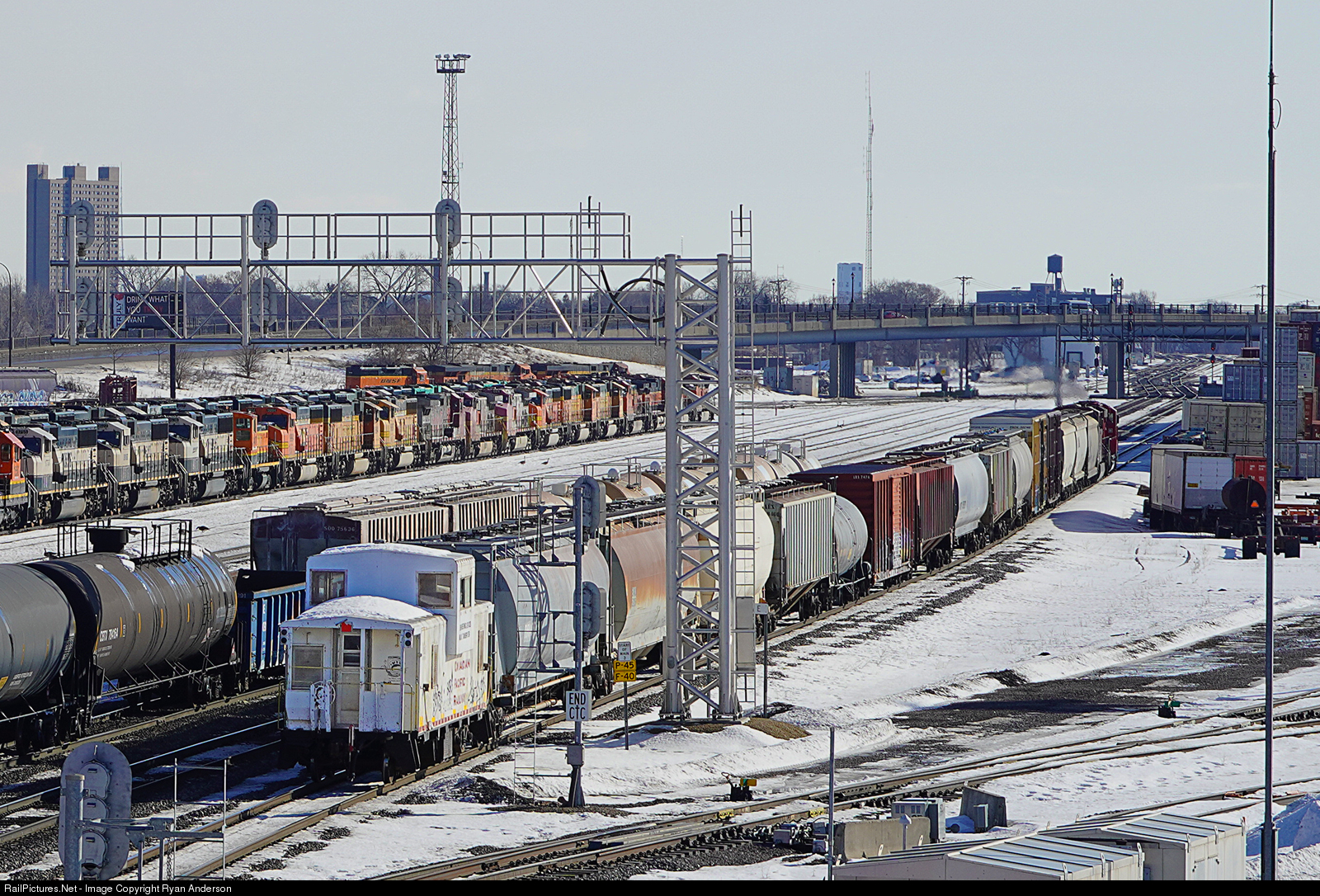 A rare sighting of a CP caboose on the move passes through Northtown Yard.
