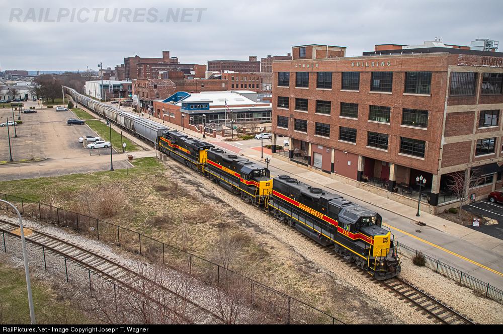 Iowa Interstate's PESI 25 road freight takes a slow, 10 mph stroll north through downtown Peoria as it creeps beside Water Street past the many repurposed brick buildings of the city's old Warehouse District. Most prominent in the scene is the Stuber Building (Murray Place); Built in 1928 by Joseph Stuber and Henry Kuck, it was used to serve as a manufacturing and warehouse hub for their tinware business. Years later, the two would part ways and the business would fold along with the pair's separation. Upon the dissolution of Stuber & Kuck, the building here at the corner of Walnut and Water St was retained by Mr. Stuber and became officially known as the "Stuber Building," still to this day proudly displaying his name. The ensuing decades found the building playing host to a variety of small businesses until Mr. Stuber's father, George Murray, Sr. leased the building and operated his namesake tire company out of the first floor. During that same time on the fourth floor worked Boss Manufacturing and their assembly line of sewing machines fabricating their own line of protective gloves while on the second housed over $1 million of Seagram hard liquor products stored in a space leased to Federal Warehouse Company. After leasing for many years George Murray ultimately purchased the building in the early 1960s and after the tire company closed, George and his family operated a catalog showroom store that, like many before it, also eventually went out of business. The building sat vacant until 1986 when Dan and Kim Philips and friend Pete Kelley opened the Antique Center and an art studio (Waterfront Studios and Gallery), which also featured a book and toy store, jewelry outlet and sandwich shop on the first floor brought in from the notion that these speciality shops would do good business with the close proximity of mainstream retail that was planned to take shape downtown. Friend of Kelley and the Phillips', renowned artist Preston Jackson also moved into the building, soon opening a studio of his own. Now the building was operating three floors with arts on the third, antiques on the second and small retail and a restaurant on the first, which all brought in a steady flow of people fed by gallery openings and other goings on at the Waterfront. The current blend of retail, art and antiques operated strong for a number of years between the late '80s to the early '90s until the economy crashed, forcing Kelley to close the Waterfront and allowing Jackson to expand his studio and eventually open his own "Round Rock Gallery" inside the building. Likewise, the Antique Center capitalized on the available space and expanded its business to two floors despite the shops and restaurant closing on the first and plans for a downtown mall scratched. By the mid-1990s, the Antique Center now occupied 40,000 square feet of the building and rent was getting too much to pay, ultimately forcing the Philips' to move out to a new location after eight years at the Stuber. Soon following suit, Jackson and his partner, Bob Emser vacated the property and opened the Contemporary Arts Center, "CAC," which is still open to this day a couple blocks north. With all the available space, the building quickly became a revolving door for many artists, especially local Bradley University college students, to create small studios of their own to practice and study art. Fast forward to autumn of 2015, the Murray family and Aristo Properties Group came together and the decision to finally redevelop the Stuber was made. Renovations to the historic building included Aristo Properties and John S. Rhodell Brewery on the first floor, Farnsworth Group on the second and high end one and two bedroom apartments on the third and fourth floors as well as a rooftop patio spaces. Lots of history to this building and it saw its fair share of businesses come and go until its much needed redo in an effort to repurpose Peoria's mass of old warehouse buildings to attract people and increase income to the city.
