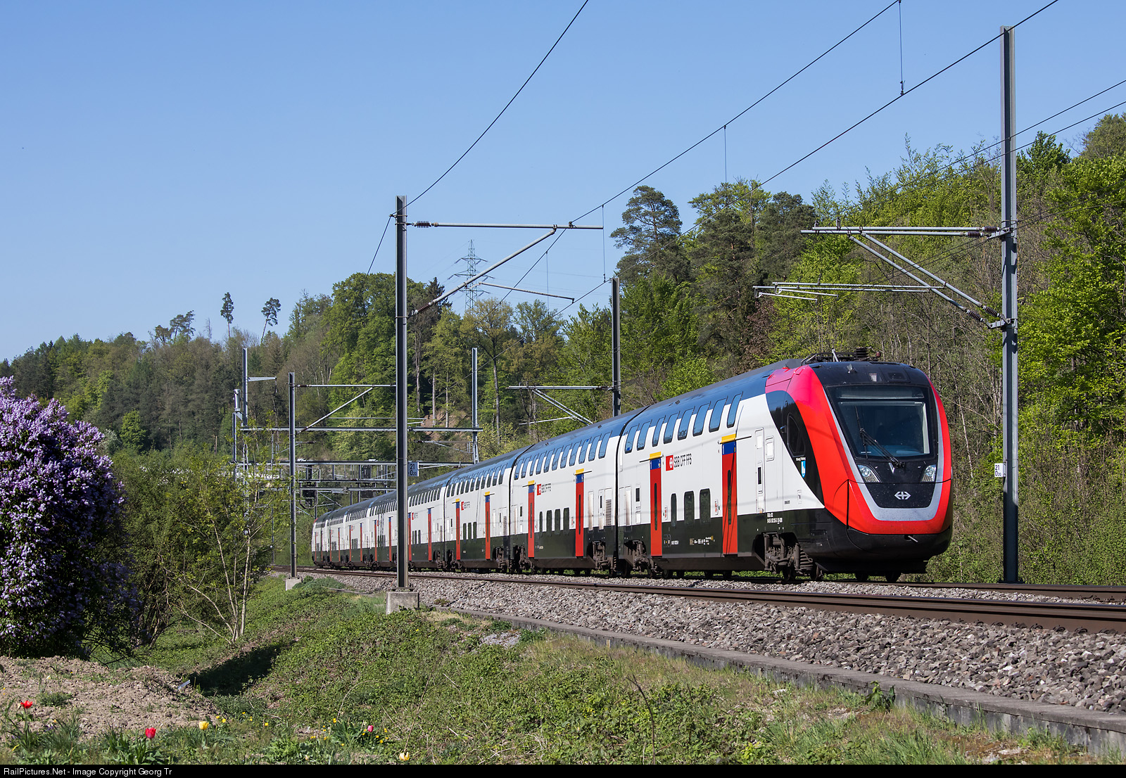 | "FVD" doubledeck train for long distance services RABe 502 # 205 "Fribourg/Freiburg" is running the IR 3274 of the line IR 13 from Chur via St.Gallen to Zürich through Kemptthal. |