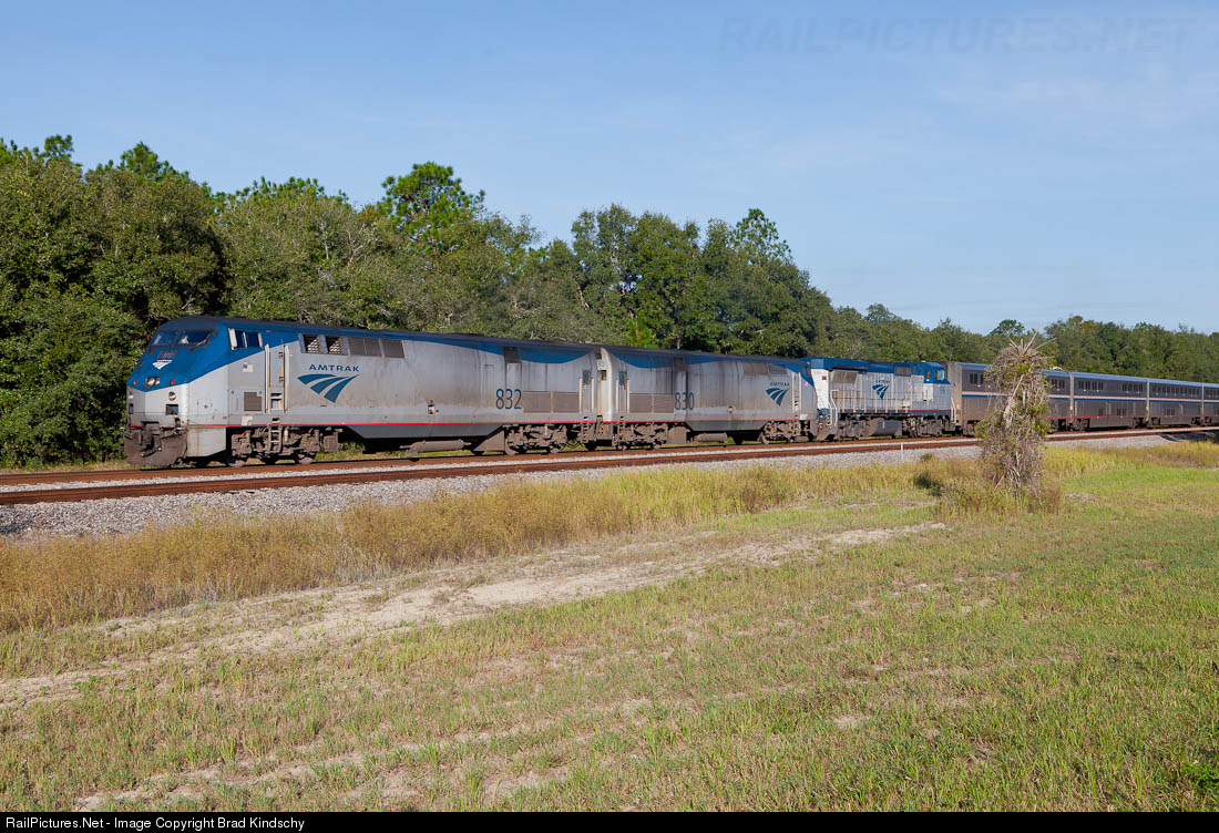 | The Auto Train passes through central Florida. I find it odd that Amtrak's longest (and reportedly most profitable) trains is assigned the oldest road power on the roster, with this particular train sporting examples of both. |