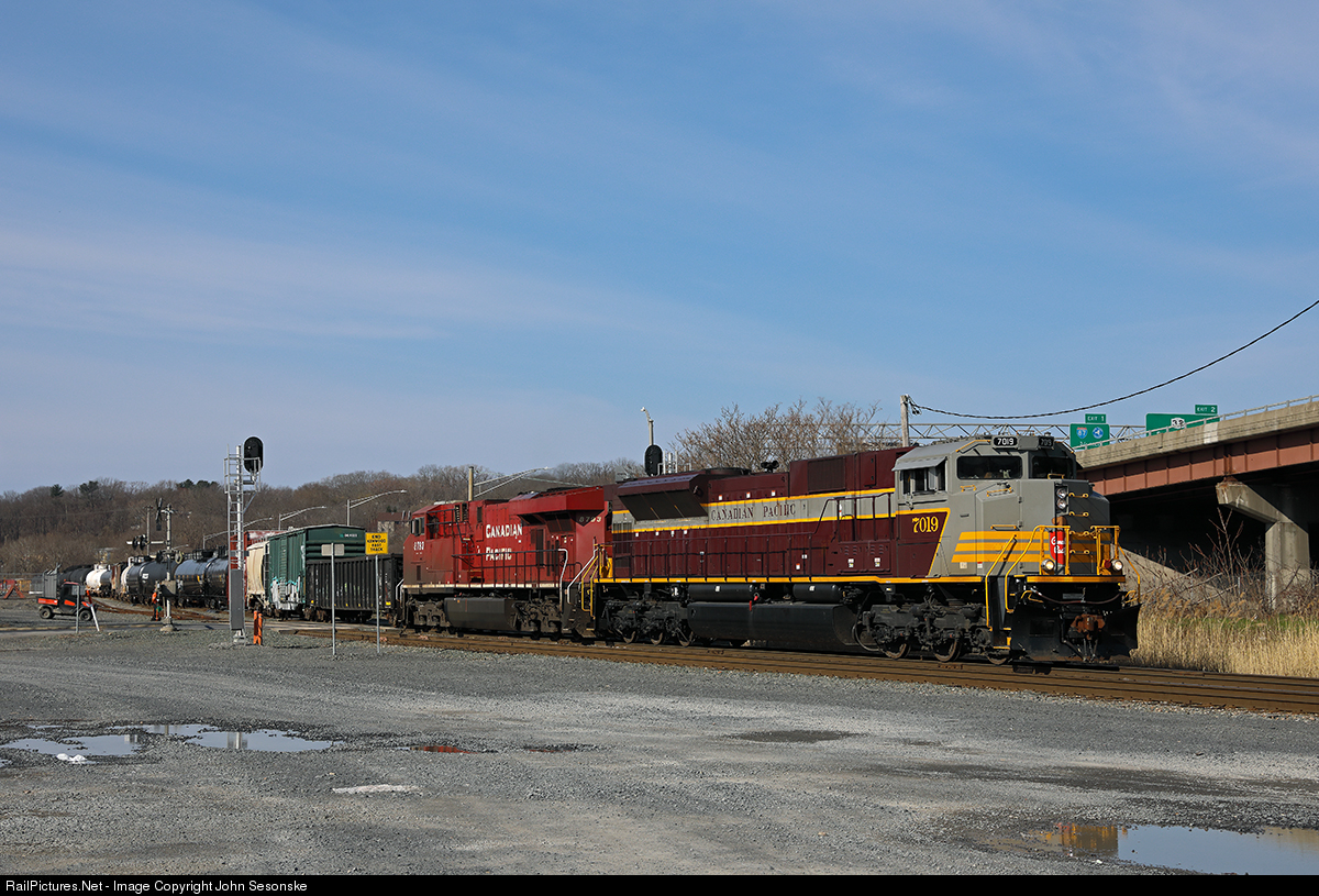 | The first CP heritage unit to visit CP's Colonie Sub and Albany leads the Saratoga to Albany turn job out of Kenwood Yard in Albany, NY. The power had come down to Saratoga from Montreal on train 252 and was used on D45 due to tonnage. |