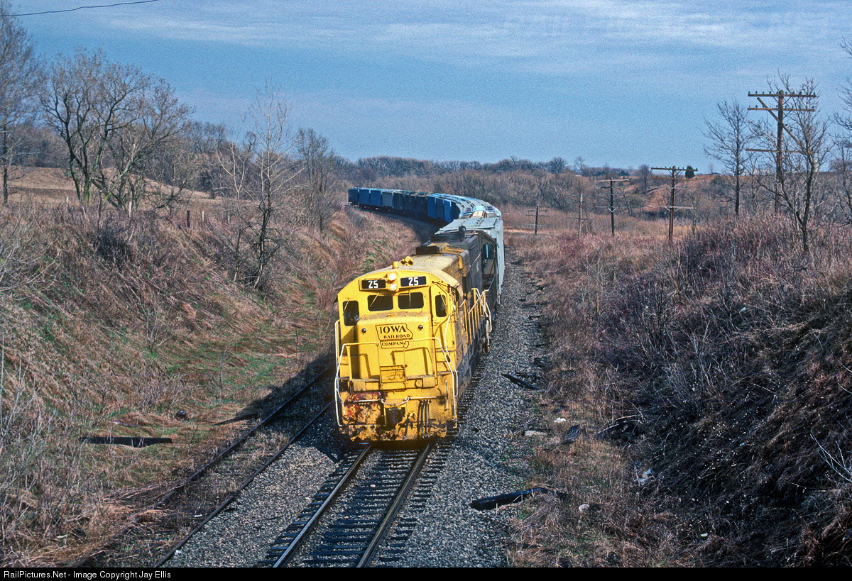 Iowa Railroad Company U30B 25 is about to pass under the BN near Wyanet Il.