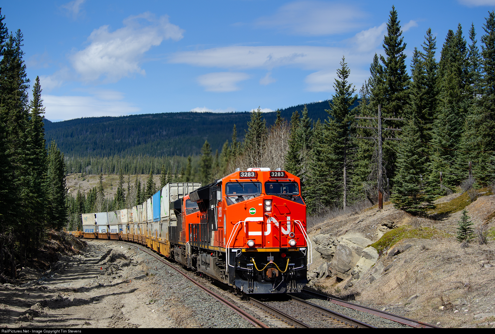 RailPictures.Net Photo: CN 3283 Canadian National Railway GE ET44AC at Entrance, Alberta, Canada by Tim Stevens