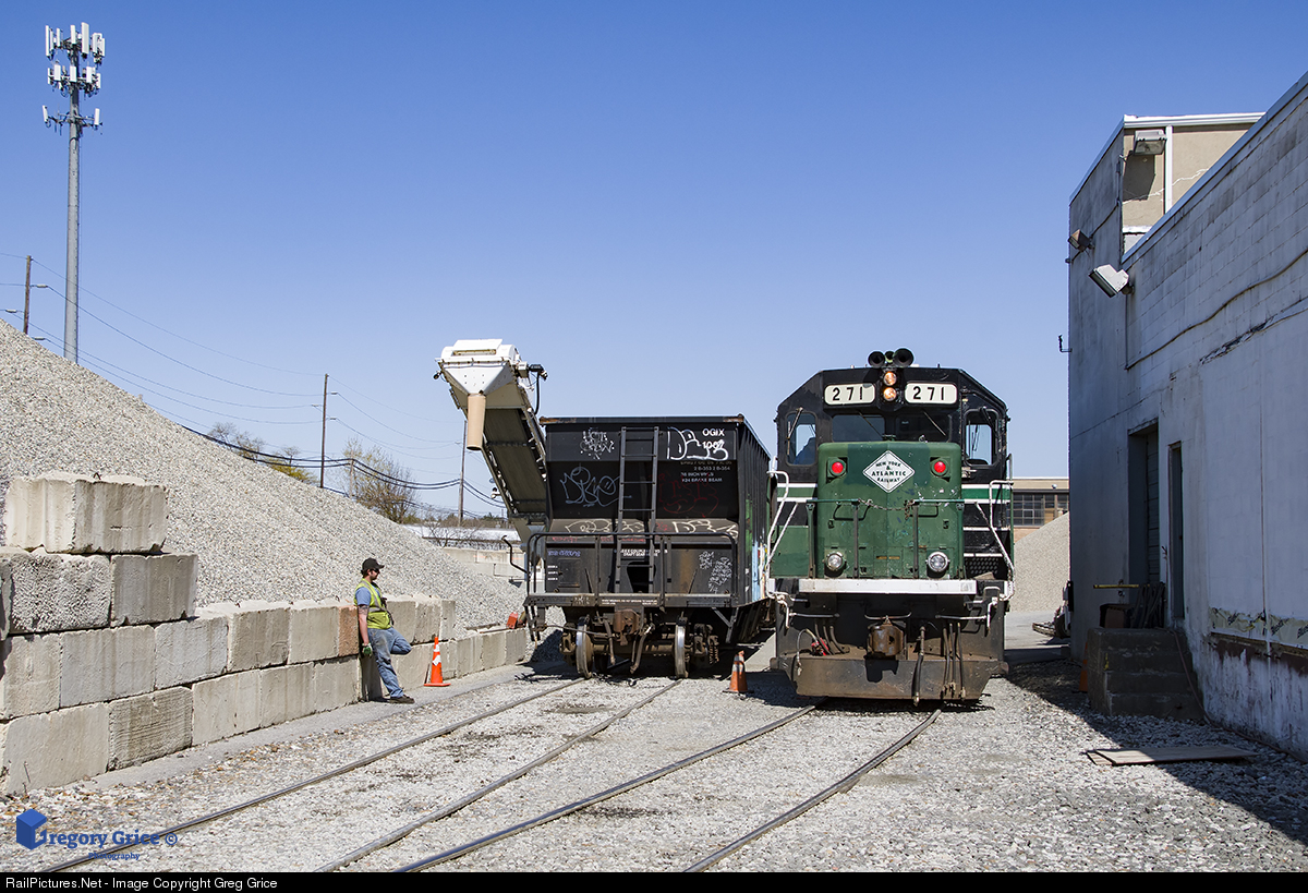 New York & Atlantic Railway's RS-71 shoves a cut of loaded stone cars into the "south track" at Giaquinto Masonry in Deer Park, NY. Once spotted the crew will grab the empty cars on the adjacent "north track". Giaquinto Masonry (Astro Ready Mix) is one of New York’s largest commercial masonry contractors, working with construction and architectural firms to build schools, retail stores, government agencies and more.