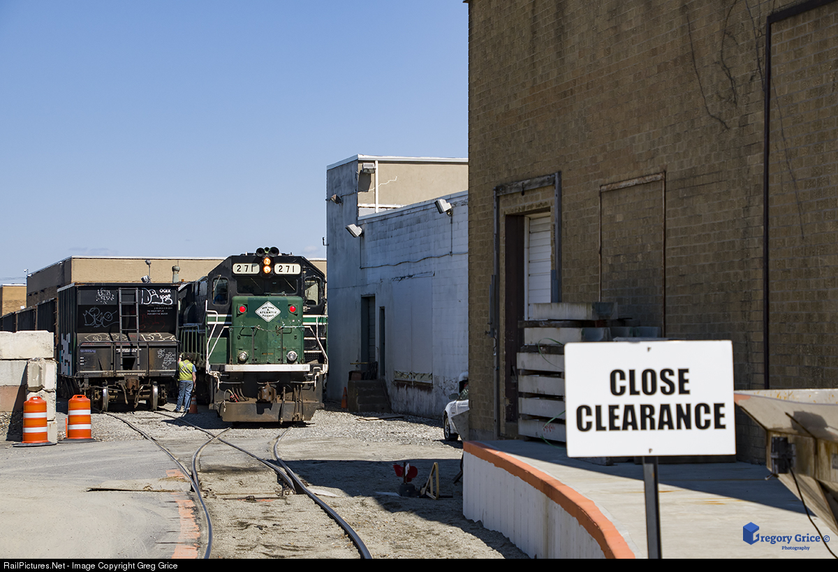 New York & Atlantic Railway's RS-71 pulls a cut of empty stone cars from the "north track" at Giaquinto Masonry in Deer park, NY. Giaquinto Masonry (Astro Ready Mix) is one of New York’s largest commercial masonry contractors, working with construction and architectural firms to build schools, retail stores, government agencies and more.