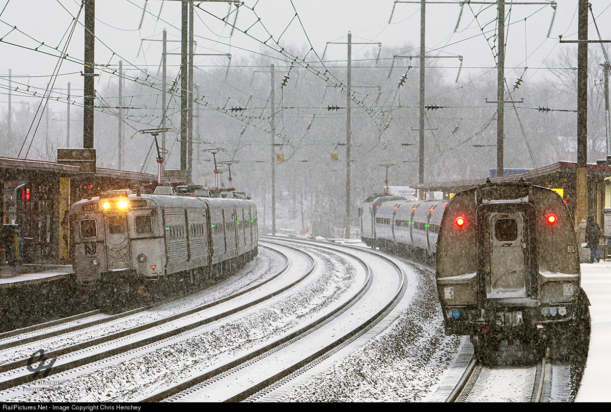 An inbound set of Arrow III railcars slow for their stop at Metropark, while a Washington bound Regional is already stopped on Track 4. This is all occurring during a snowstorm on this January evening, sadly the only only snowstorm of the season.