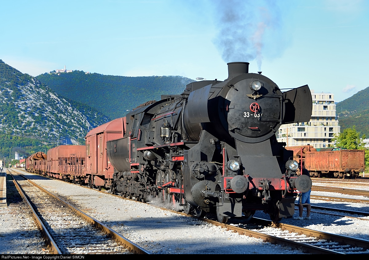 | Portrait of the Slovenian steam locomotive 33 037. The locomotive has been built in 1944 by Henschel and Son in Germany and delivered to the the Yugoslav Railways JZ. |