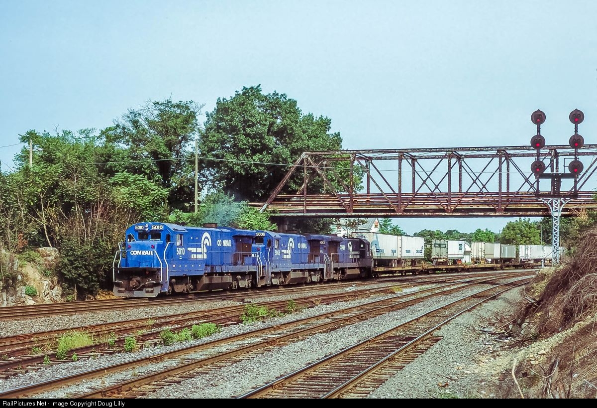 Three Conrail B36-7’s lead train Mail-3 through Belt Line Junction near Reading, Pennsylvania. The B36-7’s have been the preferred power for Mail and other hot trains since they bumped GP40 and40-2’s since they were delivered in late 1983. Now they are facing joining the second string with the recent arrival of new B40-8’s.