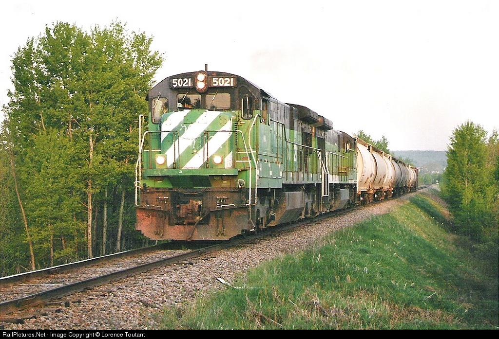 | Having just meet with 904 (3614 East) at Shanks,Qc, 5021 West easily up the grade with only 12 cars in tow. |