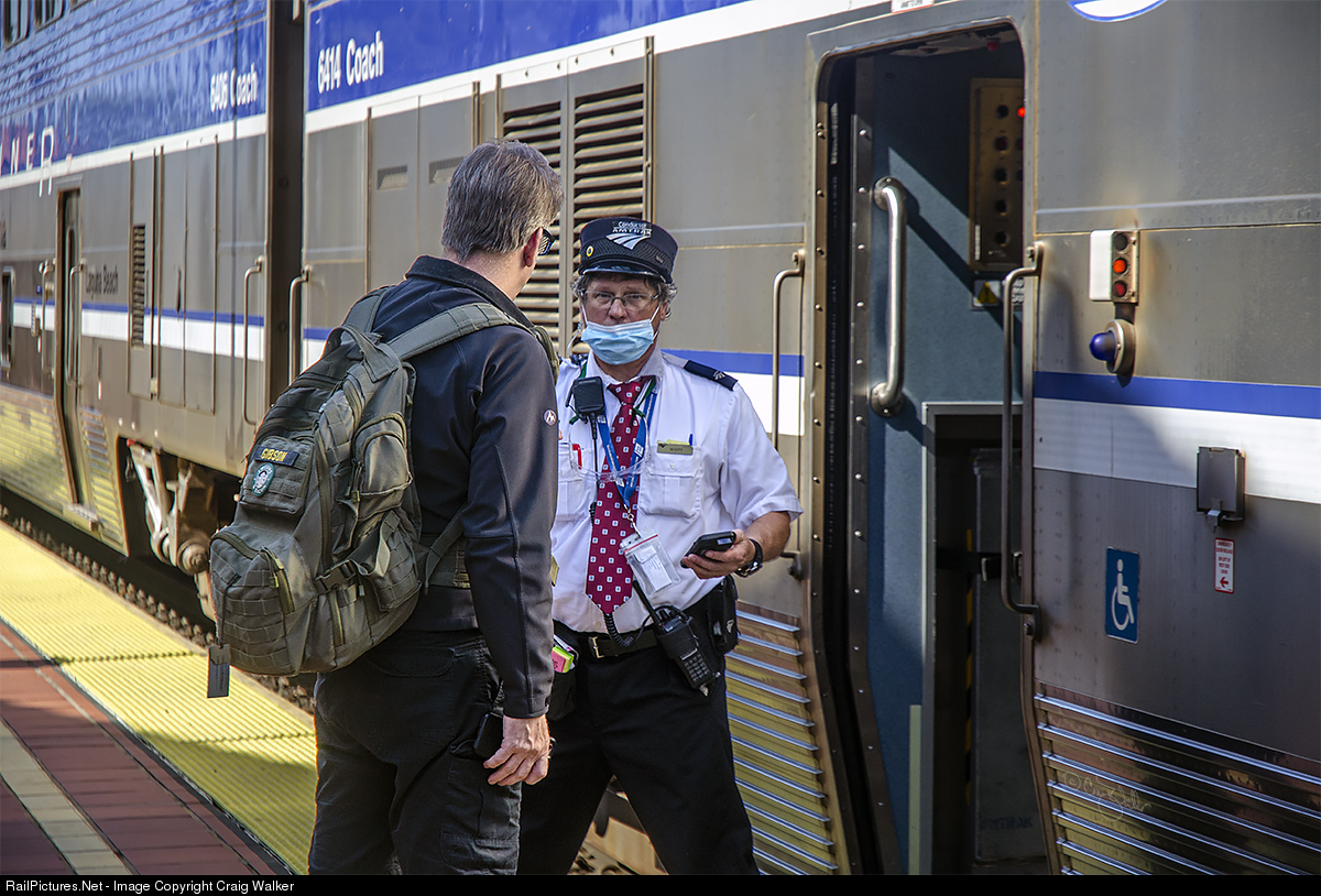 RailPictures.Net Photo: AMTK Conductor Amtrak Conductor at Santa Ana, California by Craig Walker