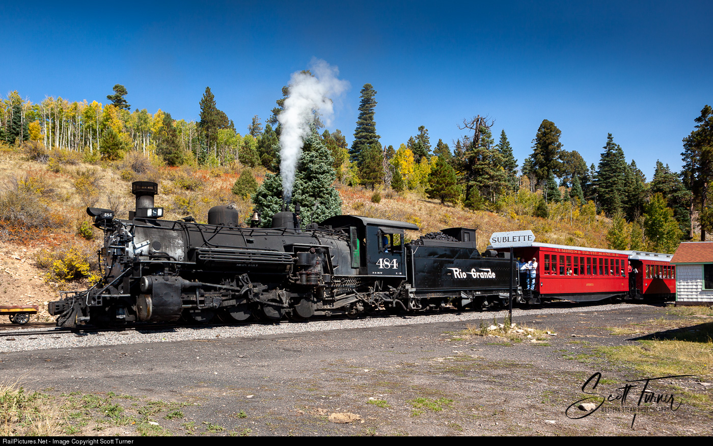 It's fall of 2009, and my son and I are in town for a Friends of the Cumbres and Toltec #315 special, but of course we HAVE to show up a day early so we can chase steam through the backcountry. Here's the morning train out of Antonito arriving at Sublette to take on water. It'll be a brief stop, taking just enough time for the fireman to fill the tender, and the engineer to do a quick walkaround to be sure all is well with #484.