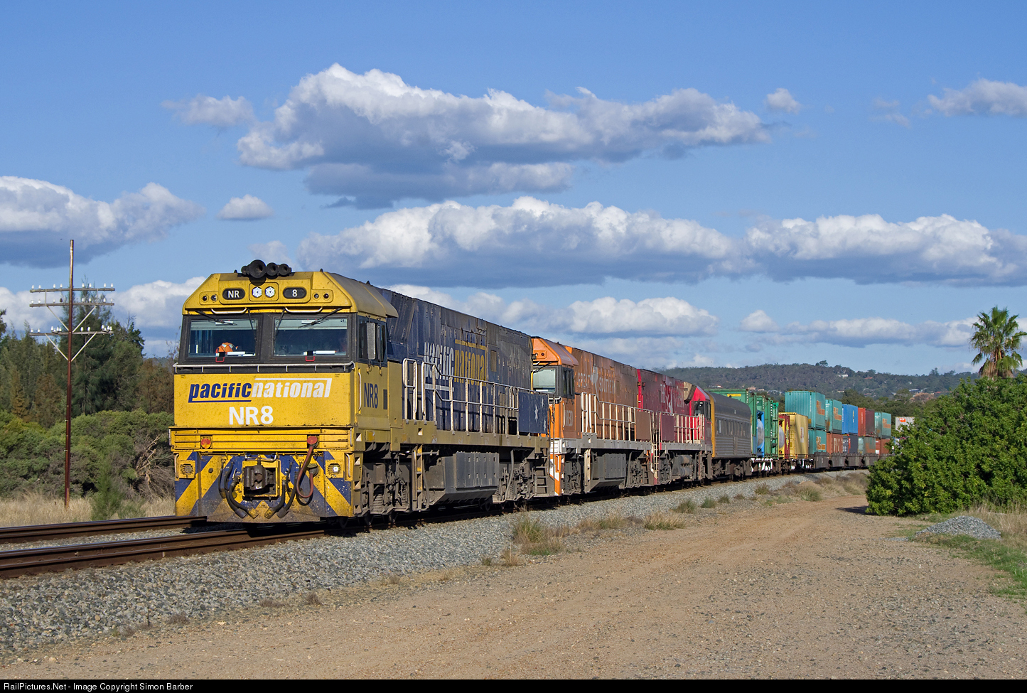 | Pacific National freight 1PM5, bound for Melbourne, has not long departed with NR units 8, 30 and 109. |