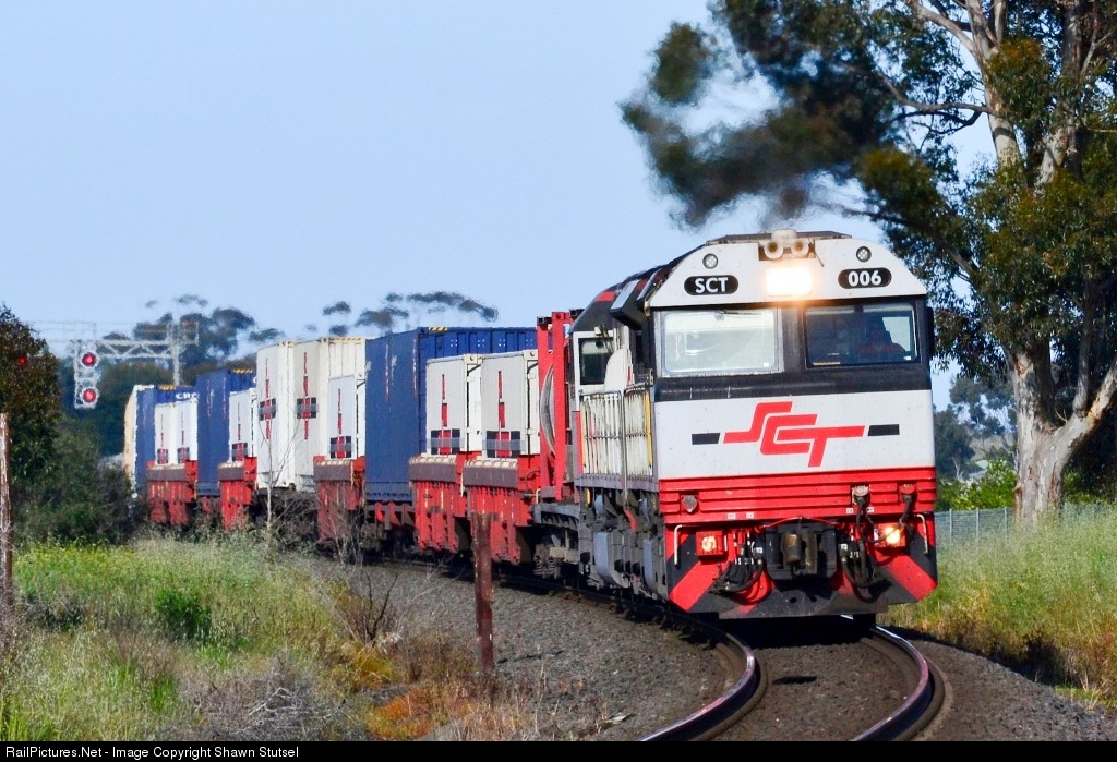 | SCT's SCT006 and SCT008 thunders through Little River, Victoria with an Up 1PM9, Superfreighter Service... |
