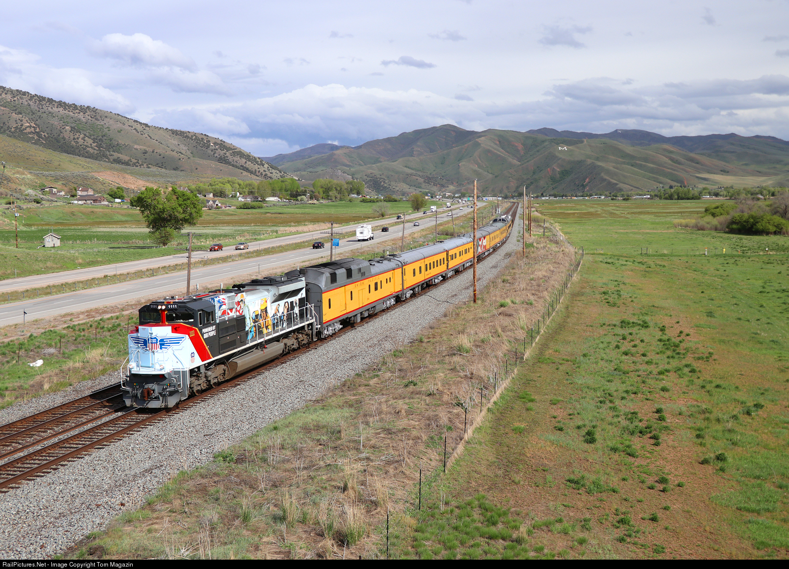 See beautiful diesel locomotives in UP's traditional armour yellow livery and special commemorative paint schemes pulling long trains of yellows cars reminiscent of the days when UP domeliners seemed to go Everywhere West.