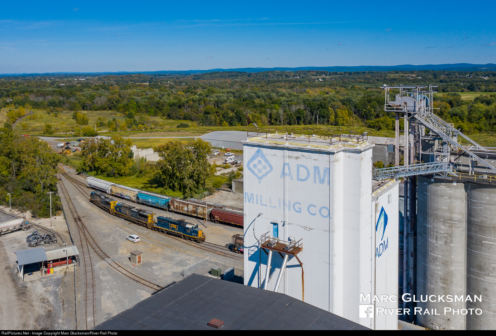 Milling. CSX B765 has arrived at the Archer Daniels Midland Mill in Hudson New York with the triple header of CSXT 1712 (SD40E3), CSXT 467 (AC44CW), and CSXT 463 (AC44CW) on the afternoon of September 25, 2019. While seeing three engines on this run is unusual, the two engines that normally handle the train are usually pushed to their limit going up the grade into town.