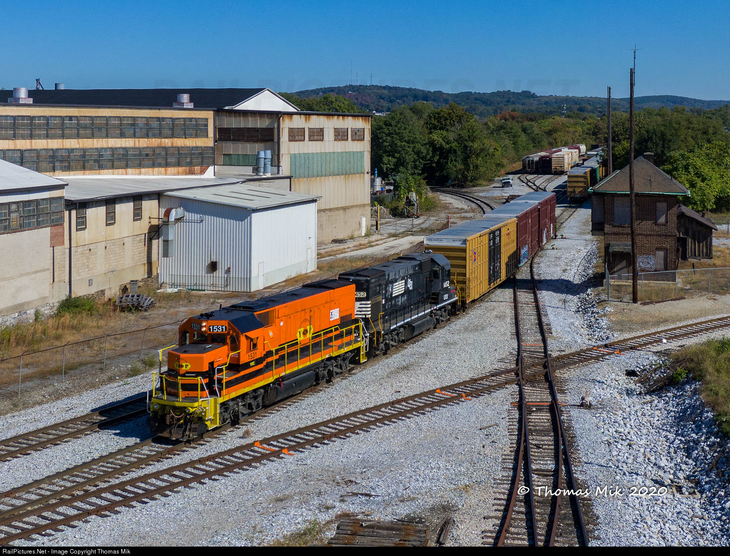 | York Railway GP15-1s 1531 & LTEX 1452 work York's MPA-1 job, switching poorhouse Yard at York, PA on October 14, 2019. |