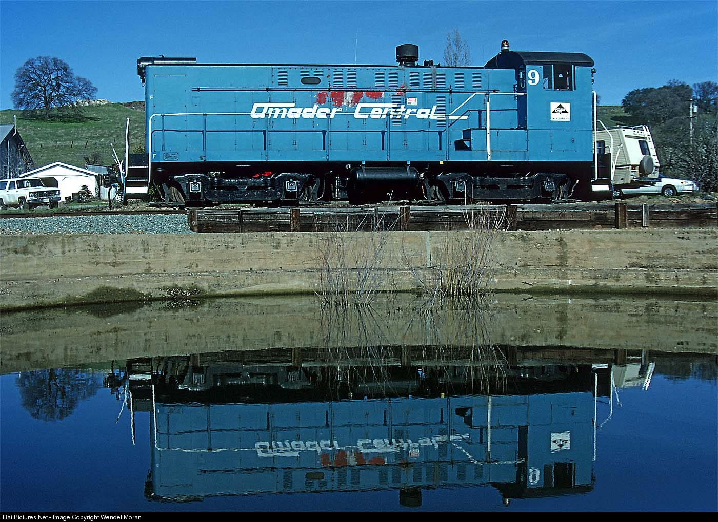 On the day before Winterail 1993, Amador Central Baldwin S-12 No. 9 poses by AMC's old turntable pit.