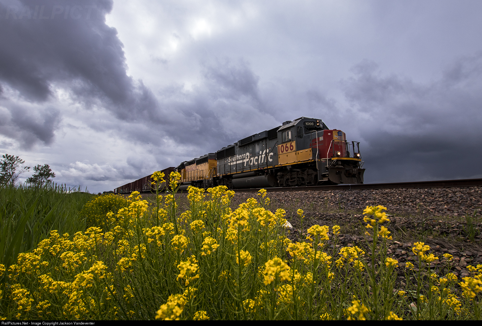 Seen near Tuscola, UP 1066, still in its Southern Pacific colors, leads the LSB54 local north towards Villa Grove. The storms had been off and on today as a front moved through the area. They sure made for a nice backdrop!