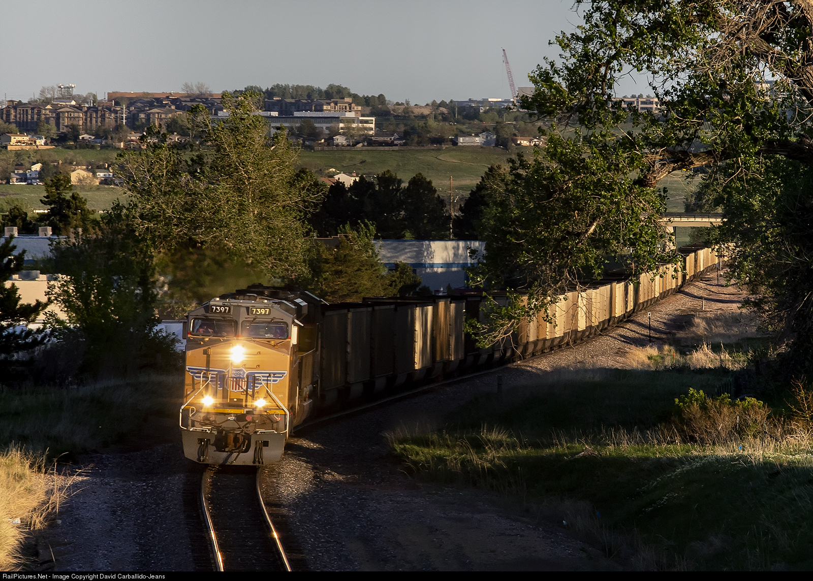 | With the sun dipping behind the Colorado Rockies, a pair of Union Pacific GEVOs have made their way onto a BNSF empty coal train as passes through the town of Louisville along BNSF's Front Range Subdivision. |