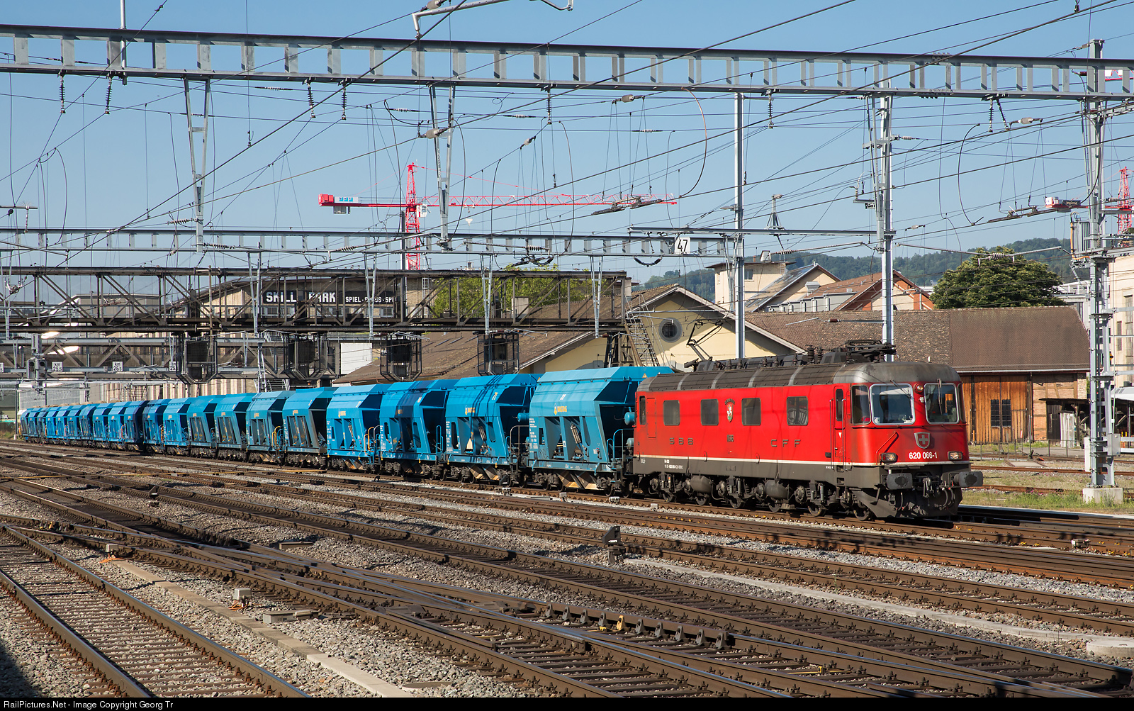 | Re 620 # 066 "Stein am Rhein" is pulling the loaded HASTAG gravel train from Hüntwangen-Wil via Bülach-Winterthur-Romanshorn VL to Rorschach freight yard (further to the MOAG between Goldach and Mörschwil) through Winterthur. |