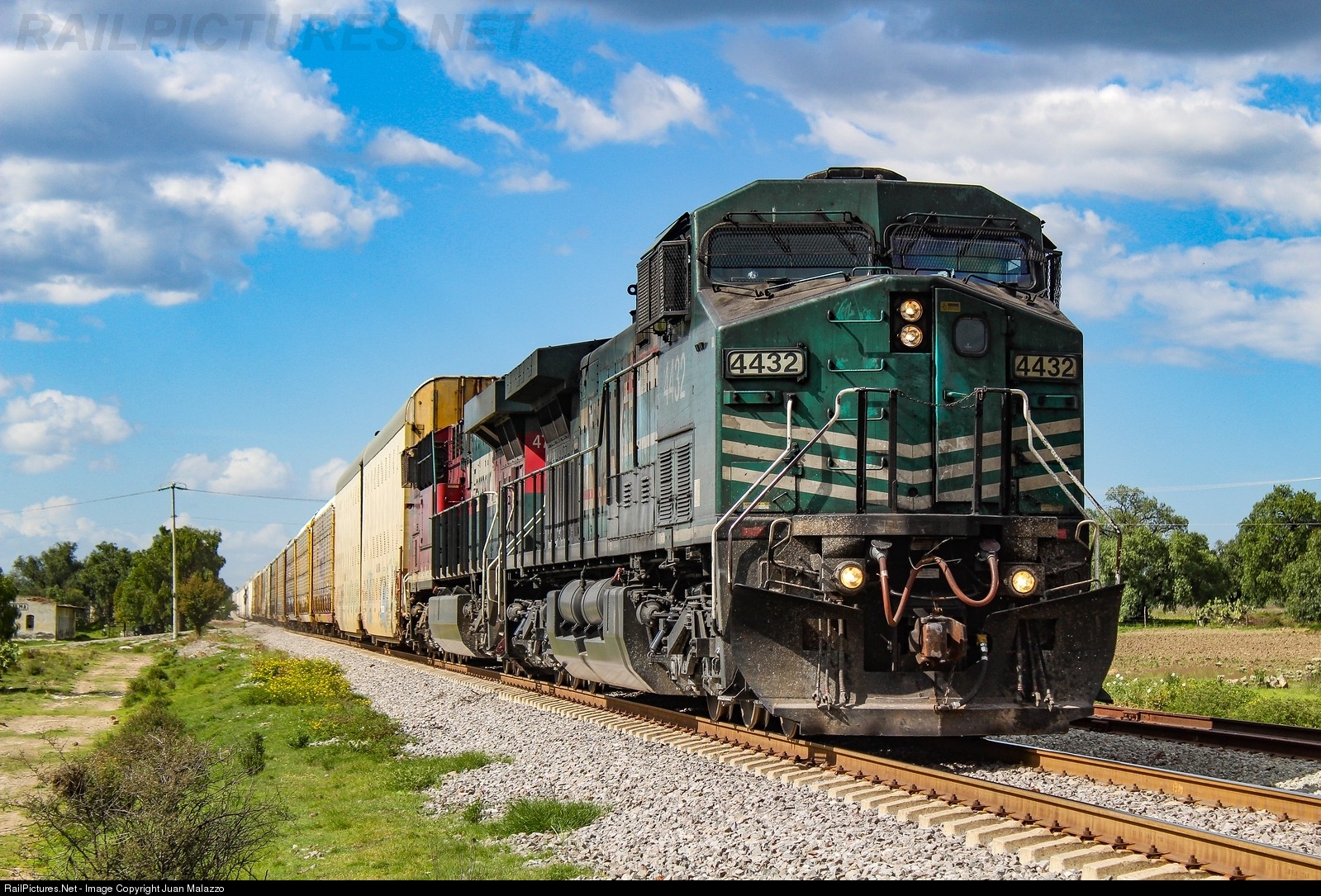 | Northbound loaded (with brand new Audi cars) Ferrosur autorack train, with a frog AC4400CW and a ES44AC at the lead |
