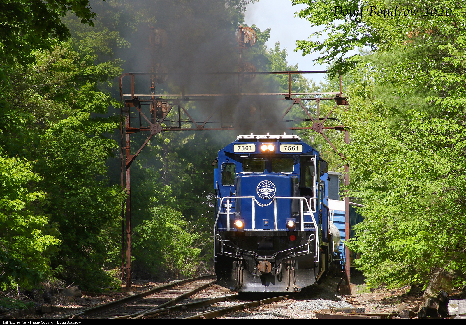| Pan Am manifest freight POED (Portland, ME to East Deerfield, MA) is seen setting off cars for Ayer at the siding at CPF-309 in Westford. |
