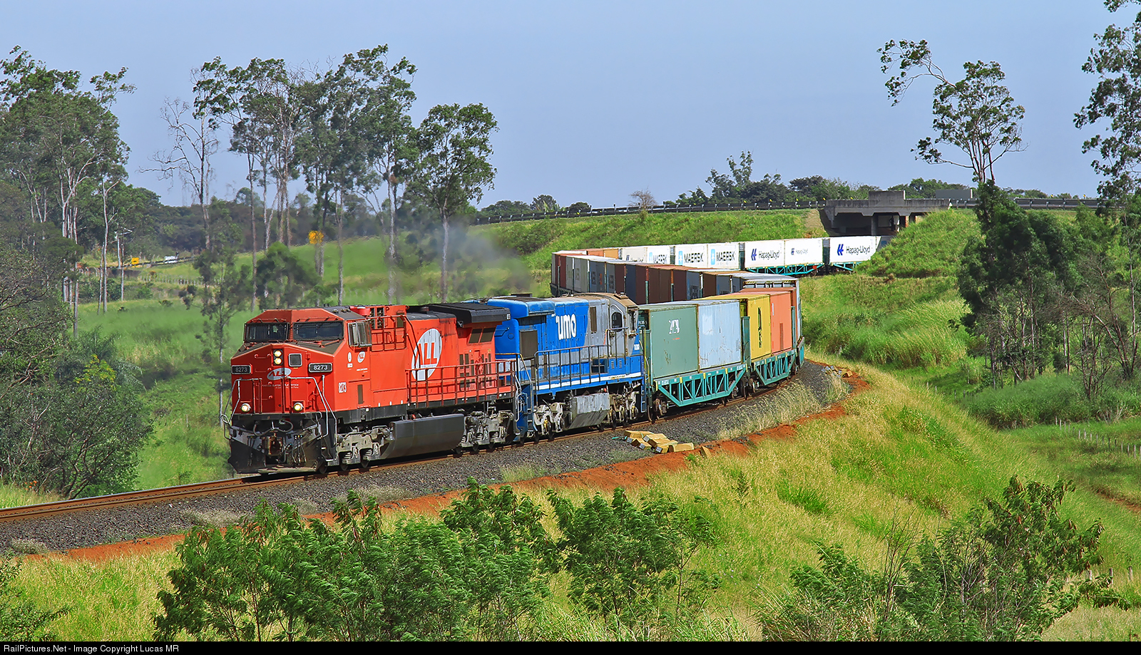 Intermodal C60 led by AC44i #8273 still in ALL scheme, departing Tutóia yard.