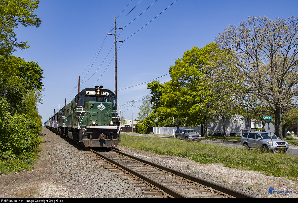 New York & Atlantic Railway's RS-70 prepares to cross Grand Aveunue in Lindenhurst, New York while heading east down Long Island Rail Road's Central Branch. |