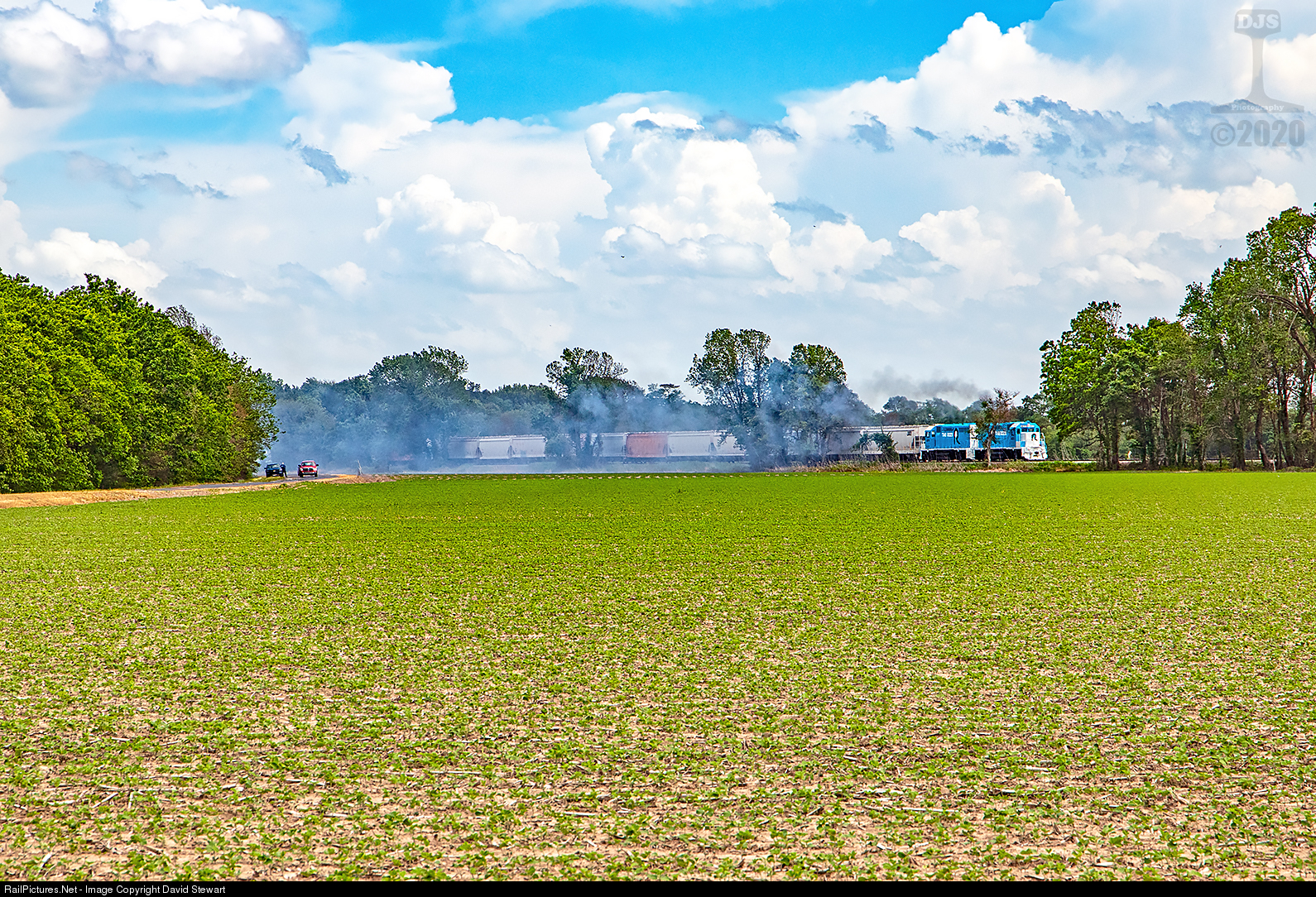 | Rock Island Rail's freshly painted 4373 is northbound at Albin, Mississippi during it's debut for the matching pair of 38's on May 23, 2020. |