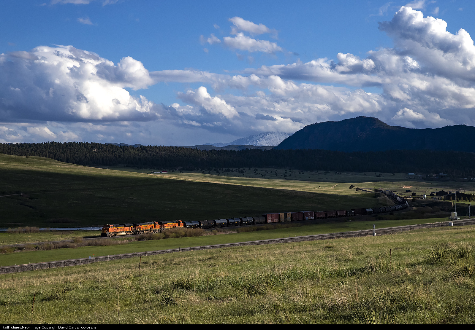 Peaking out of the shadows, a Slaton, TX to Denver, CO manifest train starts to get up to speed down the northern slope of the Palmer Divide after climbing over the 7,200' summit. The train takes main track two, which is controlled by Union Pacific dispatchers from Palmer Lake to Littleton, CO with automatic block signals (ABS) and track warrants. Main one in the same section is controlled by BNSF dispatchers with Centralize Traffic Control (CTC) and Positive Train Control (PTC).