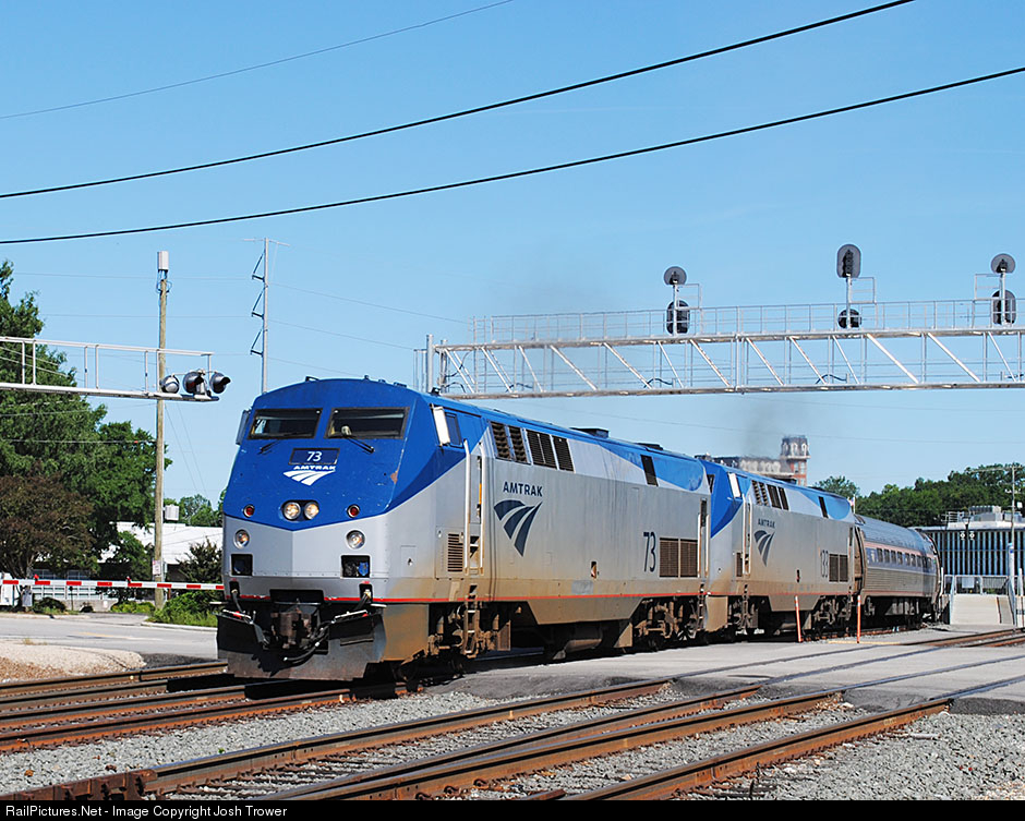 RailPictures.Net Photo: AMTK 73 Amtrak GE P42DC at Raleigh, North Carolina by Josh Trower