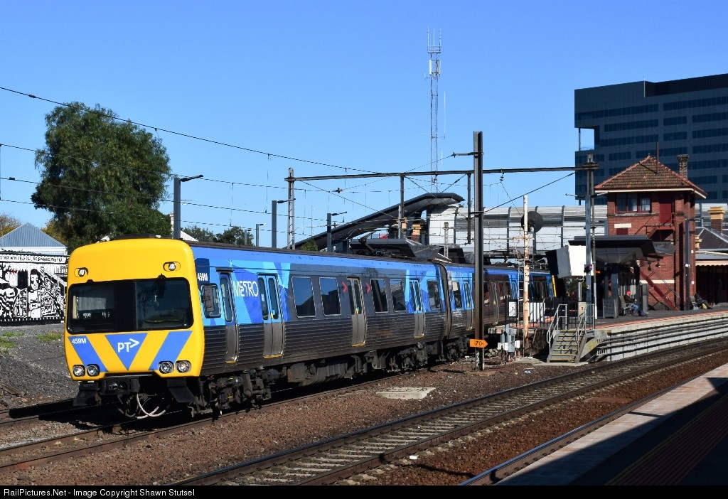 | Melbourne Metro Trains, Comeng Set 459 pulls out of Footscray Station, Melbourne with a Flinders Street Service...