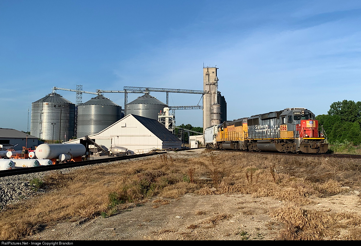 UP 1066 still wearing its SP livery switches the Pana Illinois Elevator