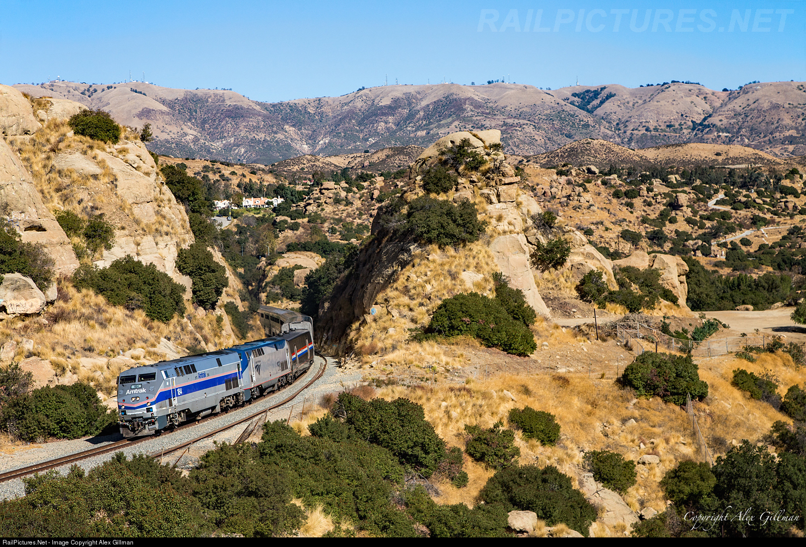| Banking through the famous rock cut just south of Tunnel 27's eastern portal, AMTK 184 looks sharp in its unique, commemorative paint scheme as it leads Amtrak 14 north. |