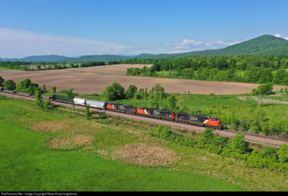 | Joint NS/CN train CP 931 rolls through the fields of Essex, NY with three CN EMD's. CN 5644, CN 8828, CN 8964 |