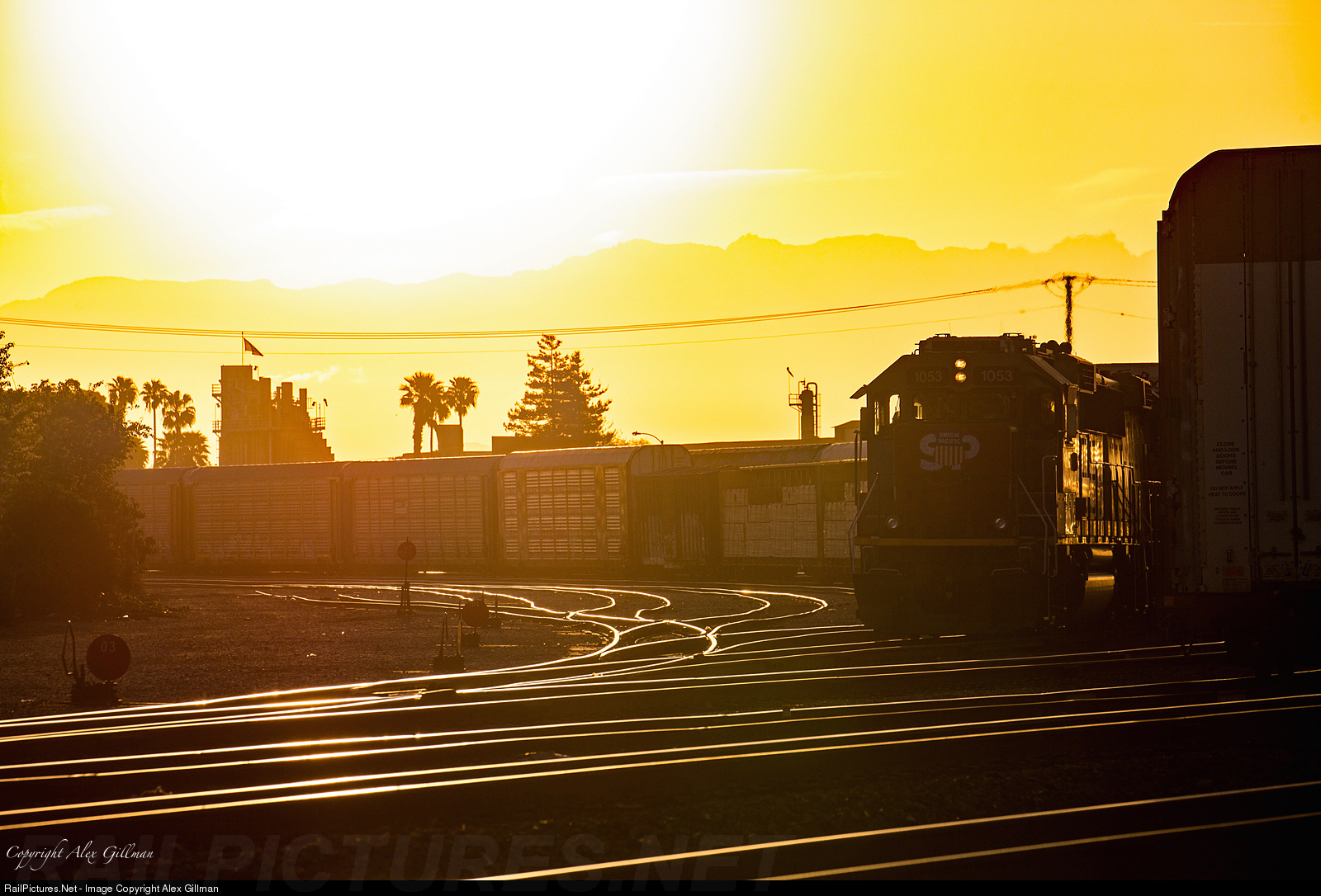 | Sunrise at Oxnard finds the LOF63, utilizing a patched ex-Southern Pacific GP60, hard at work switching cars and preparing to bring the next string of autoracks out of the UP yard and out onto the main to them shove back onto the Ventura County Railroad's interchange tracks. |