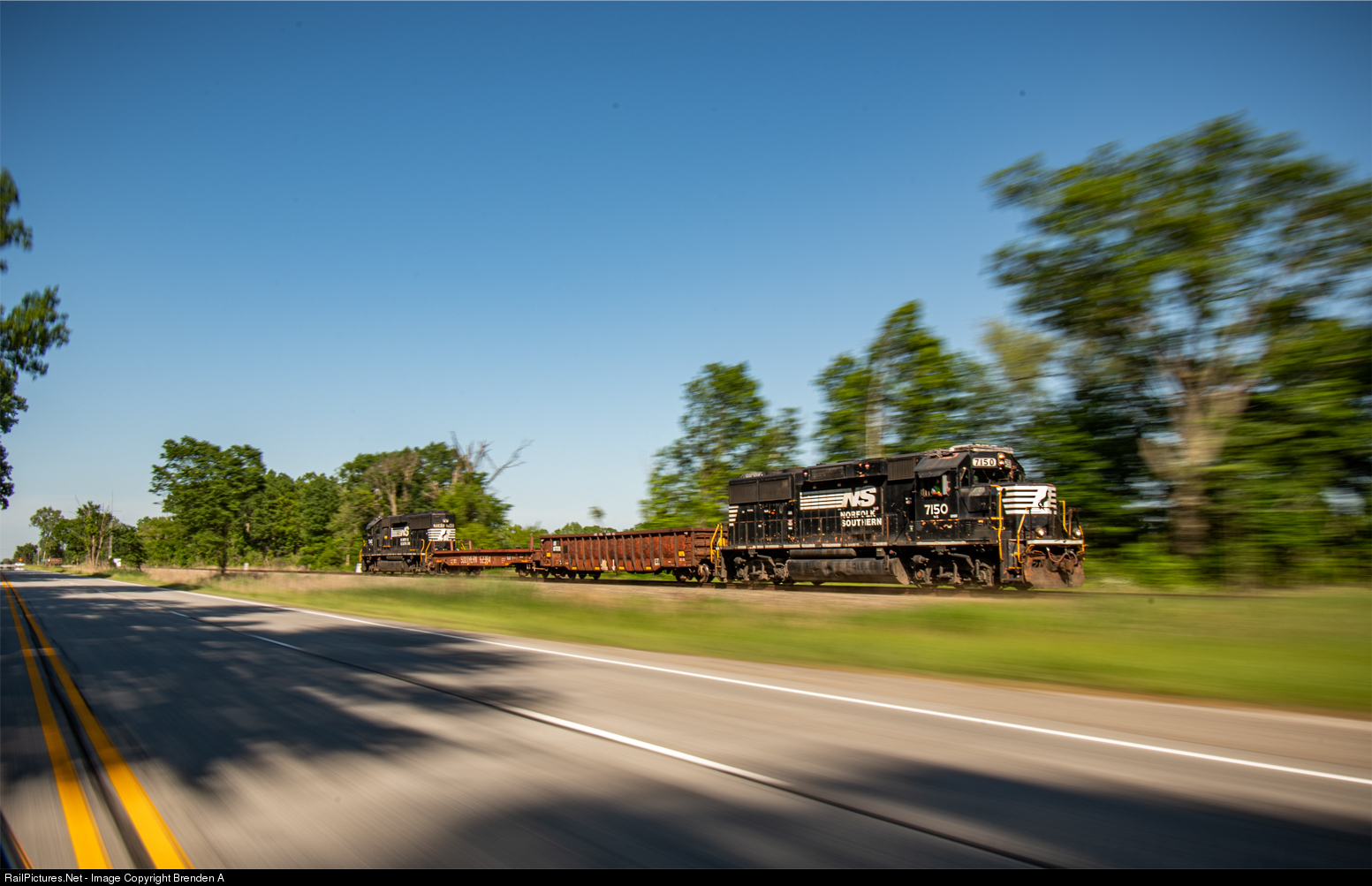 In a fairly rare weekend edition, Norfolk Southern's B05, led by 28-year-old GP60 #7150, parallels the old US-20 highway for a good three miles as it returns from a long day of work along the former Michigan Central railroad right-of-way. From here, it will turn onto the Chicago Line before terminating at Burns Harbor. While this line primarily hosts Amtrak's daily high-speed Wolverine and Blue Water services, this local is one of the only forms of freight traffic this route sees on a regular basis.
