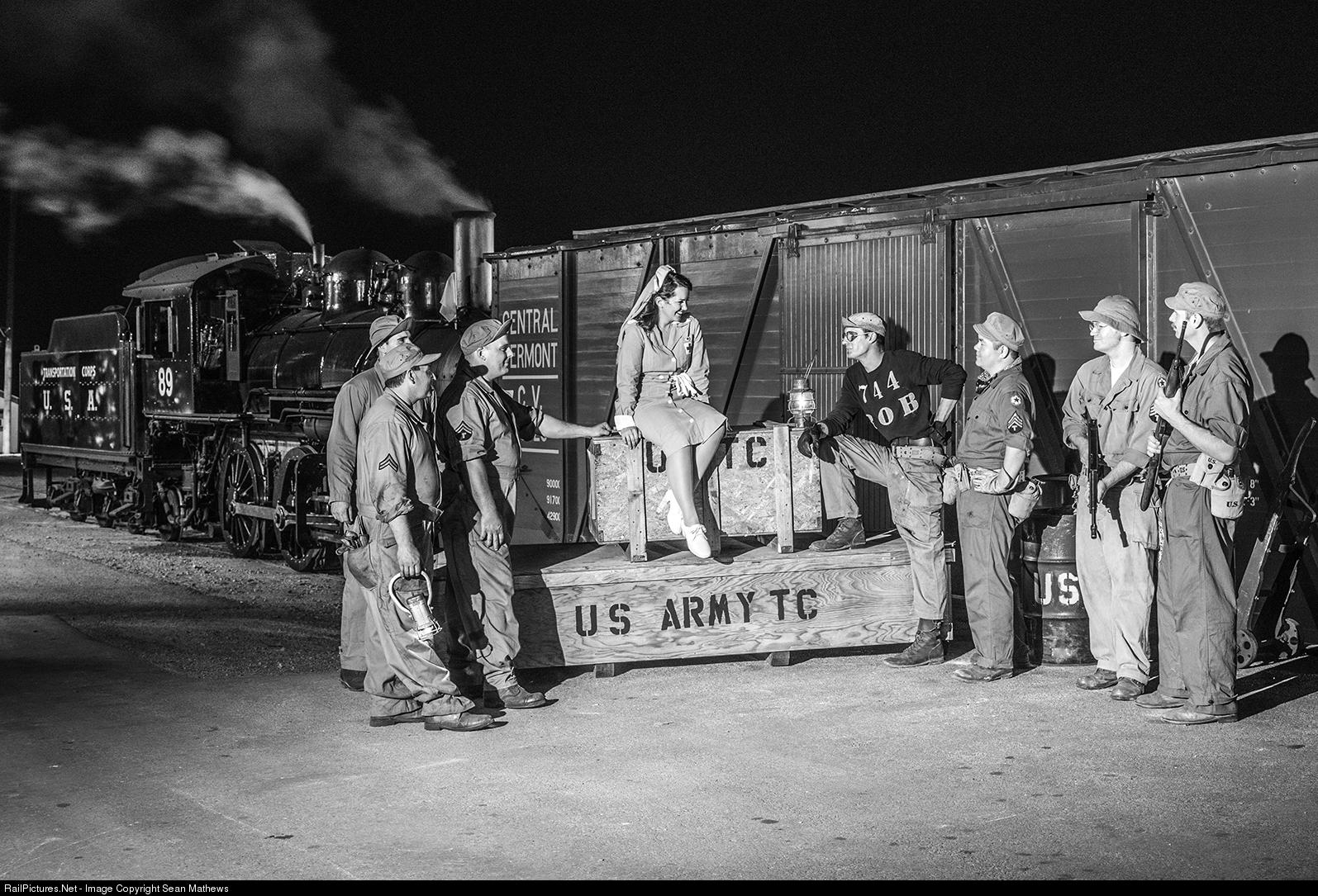 It's the end of a long day of a special Lerro chartered shoot. The shoot was organized as a fund raiser for a barn that had burned down near the rail line. Strasburg 89 was dressed up in Transportation Corps insignia. The night shoot involved a WWII era recreation.