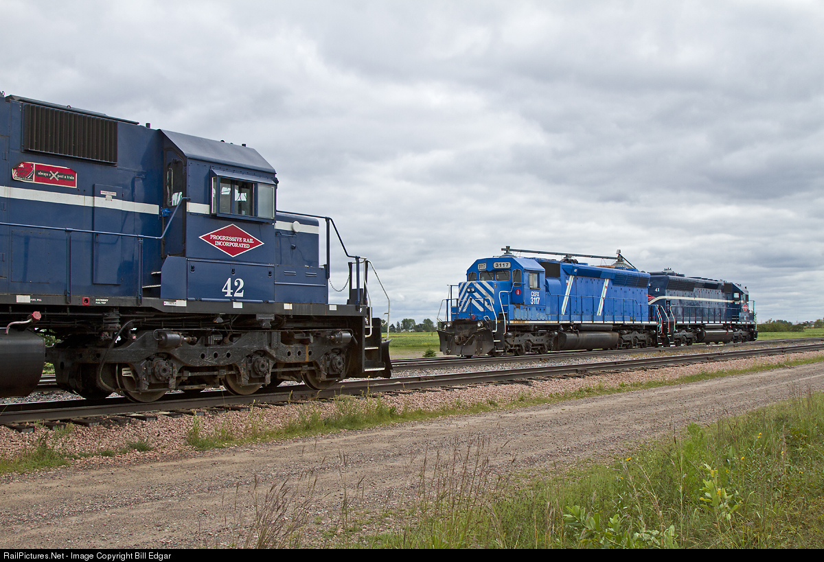 | A pair of SD45s and an SD38-2 await their next assignments at Chippewa Falls, WI on the Wisconsin Great Northern. CEFX 3117 is former SP 8888 built in April 1967. It was rebuilt to an SD40M-2 and has been leased to both CSX and CP, and now Progressive Rail Inc. for the WGN at the time of this photo. |