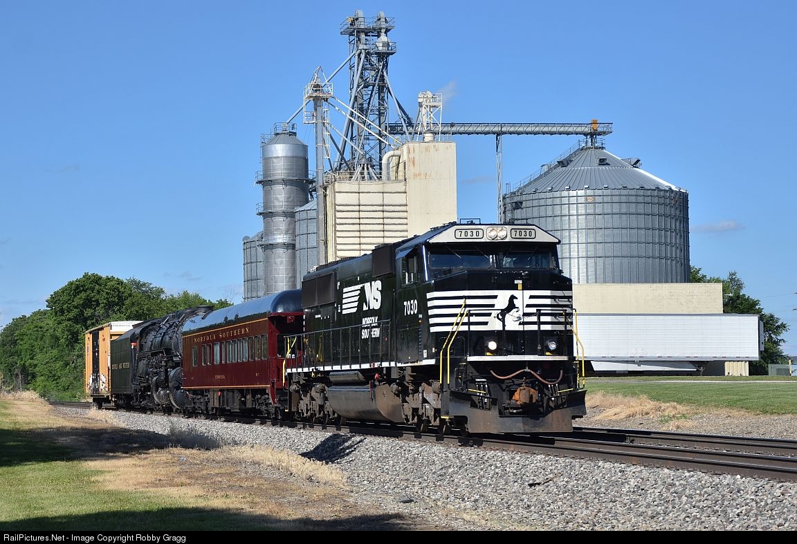 | NS SD60E 7030 tows the N&W 2156 west into Danville. The 2156 is heading back to the St. Louis Museum of Transportation after a 5 year loan to the Virginia Transportation Museum in Roanoke, VA. |
