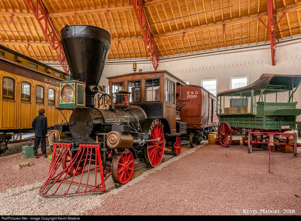 During the US Civil War, she was used extensively to transport troops and material. In October of 1862, she survived a very close call when Confederate Cavalry under the command of Gen. J.E.B. Stuart raided Chambersburg, PA and burned the engine house there to destroy Union rail equipment. Pioneer was in the house that day, but unlike some of her stablemates, she survived the fire and soldiered on. Amazingly, this little engine continued her service until her retirement in 1901, at which time she must of been one of the lightest standard gauge steam engines in the country. Like many classic steam survivors, she enjoyed a second career as a touring exhibit, which lasted the next half century. During that time, she visited numerous major rail events and world's fairs. Over the years, the Pennsylvania Railroad absorbed the CVRR, and in 1961, they donated Pioneer to the Smithsonian Institution, where she went on display in the National Museum of American History. In 2010, the B&O Railroad Museum collaborated with the Smithsonian in an extensive restoration that left her looking like you see her here. As of 2018, when this photo was taken, she was on long-term loan to the B&O Museum, displayed right next to the B&O #25.