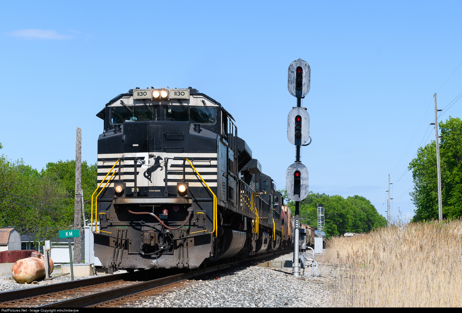 | SD70ACe 1130 leads Norfolk Southern manifest freight 149 as it speeds west through the KM control point in Vermilion, Ohio. These are the last Nickel Plate signals still active in mainline service, but with replacements already standing out of frame, it's only a matter of time before these are replaced. |
