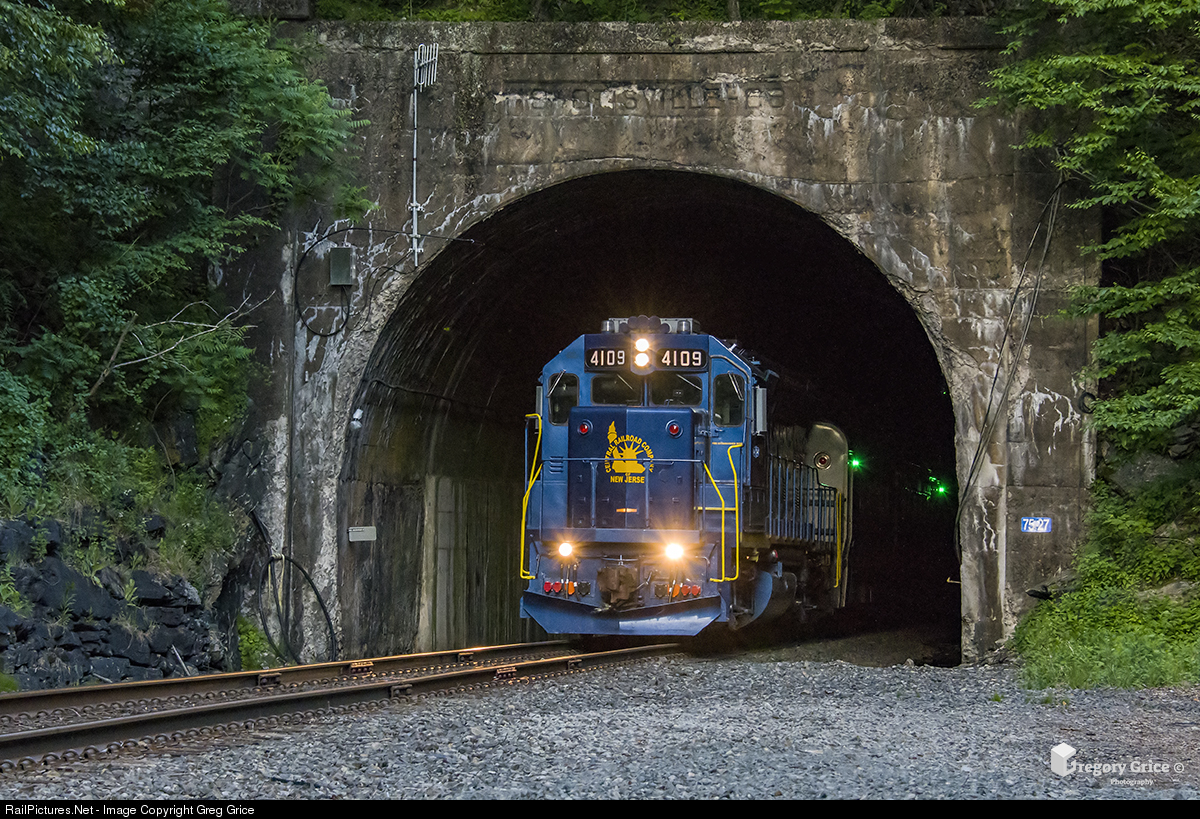 New Jersey Transit's Central Railroad of New Jersey Heritage GP40PH-2 #4109 leads Port Jervis Line train 79 out of the former Erie Railroad Otisville Tunnel in Otisville, New York. |