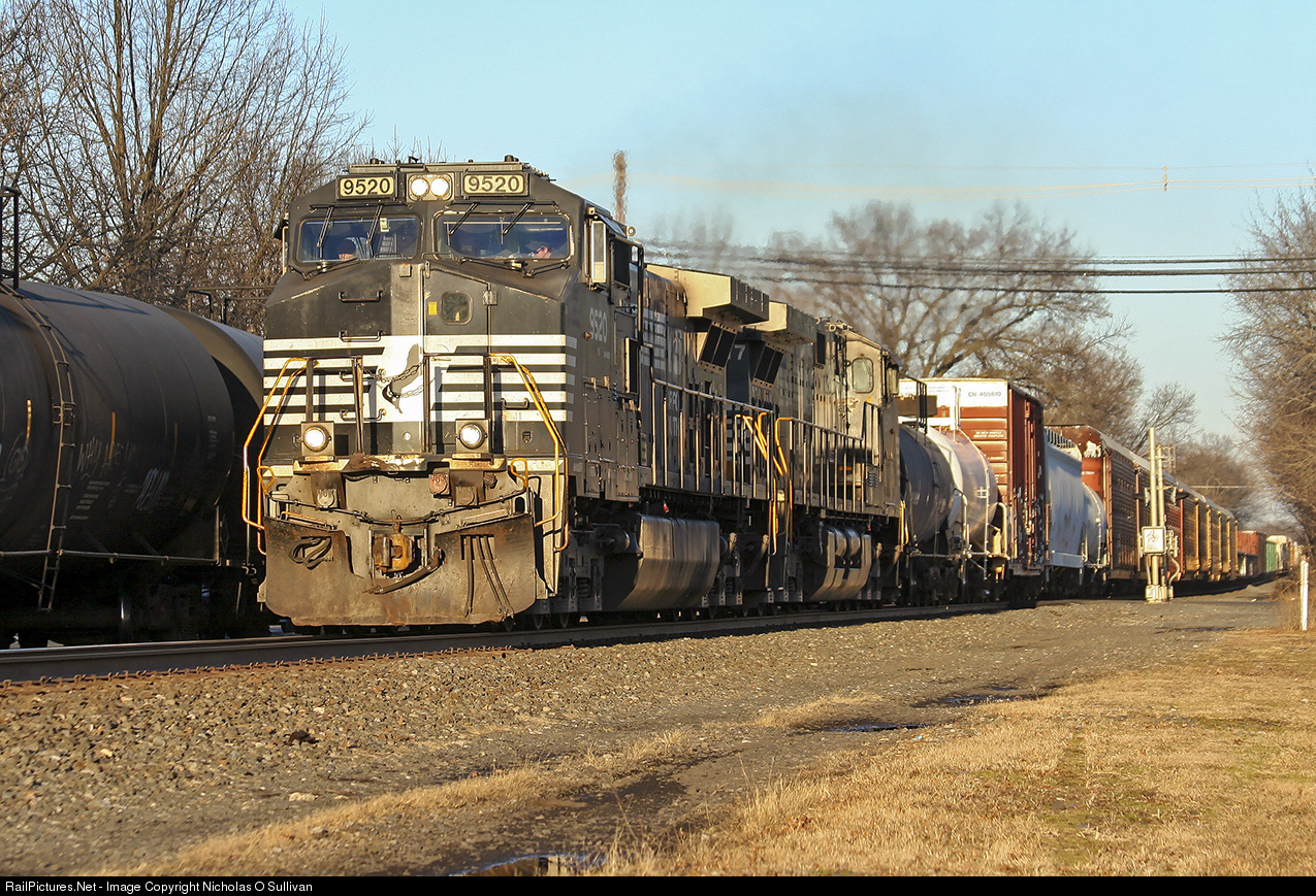 East Meets West: NS 33K, having completed work in Manville, is resuming its westward journey with a pair of Dash 9 locomotives. At 13th Avenue, it meets its eastward counterpart, NS 32A, which is about to begin work at Manville. By October of 2019, both of these trains would be abolished. Behind NS 9520 is NS 9617 (C44-9W).