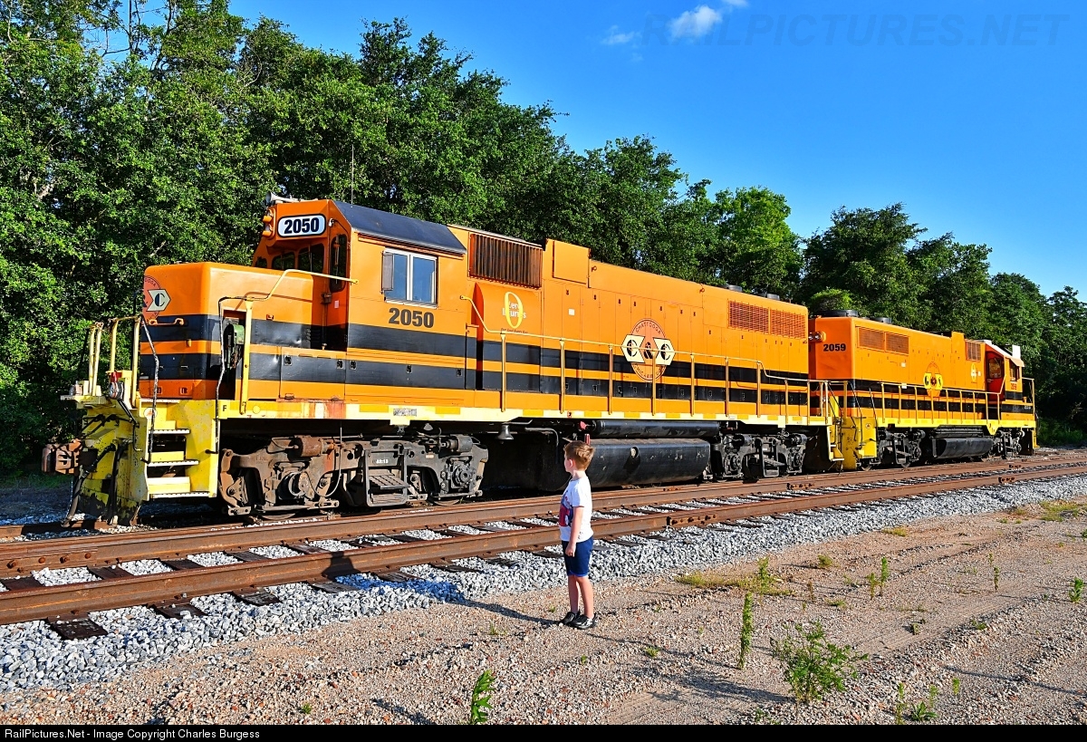 | Memories that will last a lifetime! After following CSX A724 to Bainbridge, we decide to stop by the Bainbridge Industrial Park to see if the Georgia Southwestern has any power left there for the weekend. With luck on our side, we are albe to spot the GSWR power. After jumping out of the car, my five year old son inspects the bright orange and black locomotive. CCKY 2050 started life in 1969 working for the Penn Central and became Atlanta & St. Andrews Bay 504 before receiving the Genesee & Wyoming corporate colors. |