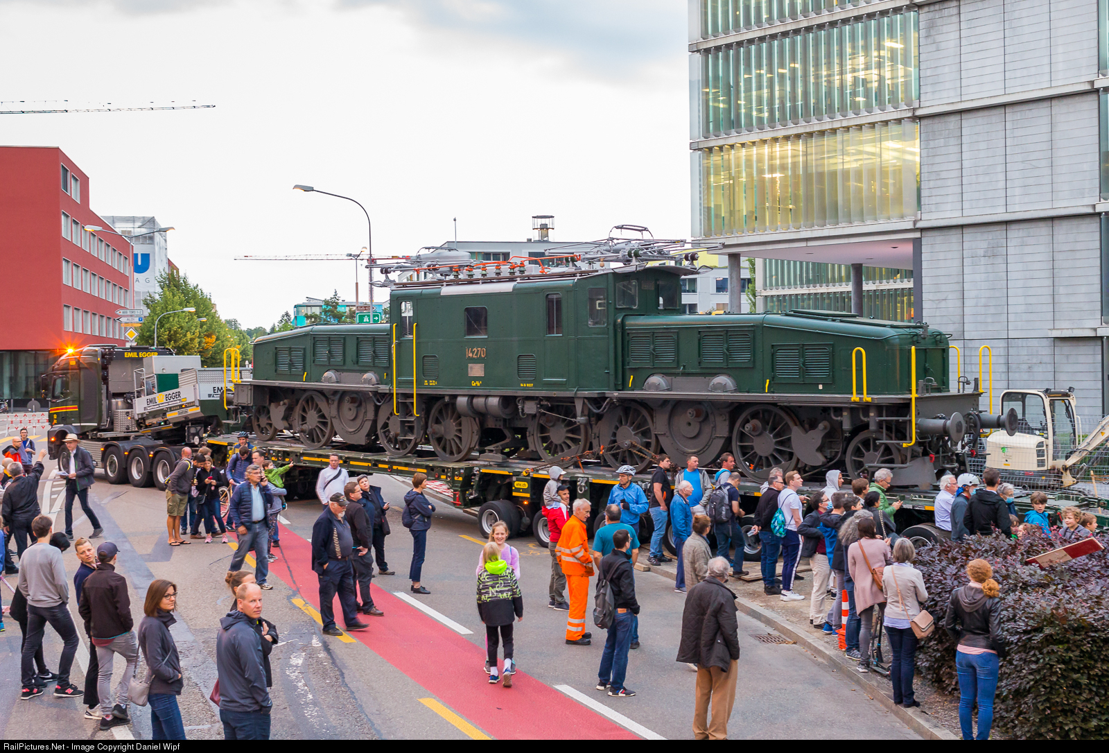 The Ce 6/8 II No. 14270, built in 1920, was returned last Monday to its place of origin, the former Maschinenfabrik Oerlikon (MFO). There it will now be a memorial to the golden age of Swiss locomotive construction and find its peace of old age in an exhibition space under a roof. Delivered in 1920, it served as a freight locomotive in Switzerland for a long time until 1969. At that time it was a monumental testimony to Swiss locomotive technology and engineering know-how. In 1920 it was definitely ahead of its time and was designed especially for the heavy freight train service on the Gotthard. Thanks to its double-sided front ends, the crocodile was able to negotiate the gradient without any problems despite its length of around 19.5 m. From 1971 onwards, the locomotive weighing around 128 t served as a monument in Erstfeld and spent a miserable existence. Exposed to wind and weather on a concrete base, the locomotive rusted over the years before it was bought by the association in 2012 and prepared for the journey to Oerlikon. There it underwent a general overhaul, during which the rust was removed and repainted. However, it is no longer able to drive. After several years of refurbishment, the time had come on 15.06.2020 and the locomotive could be transported by heavy haulage to what is probably the last place in her career. The association OERLIKON Industriegeschichten collected enough money to build a dry and protected shelter, which from now on serves as a home for the once proud locomotive. Altogether there are still 9 pieces of these locomotives, some of them even still fit for driving.