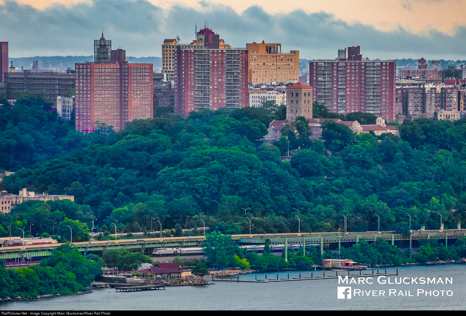 Amtrak Train 241 passes through northern Manhattan at 7:32 PM on Friday, June 19, 2020. P32AC-DM 710 leads in its “retro" Phase III paint, which is now the standard on Empire Service engines. The train is approaching Dyckman Street next to the Inwood Canoe Club and Dyckman Marina. Just above it to the right is The Cloisters, an incredible collection of Romanesque and Gothic artwork and architecture operated by the Metropolitan Museum of Art.