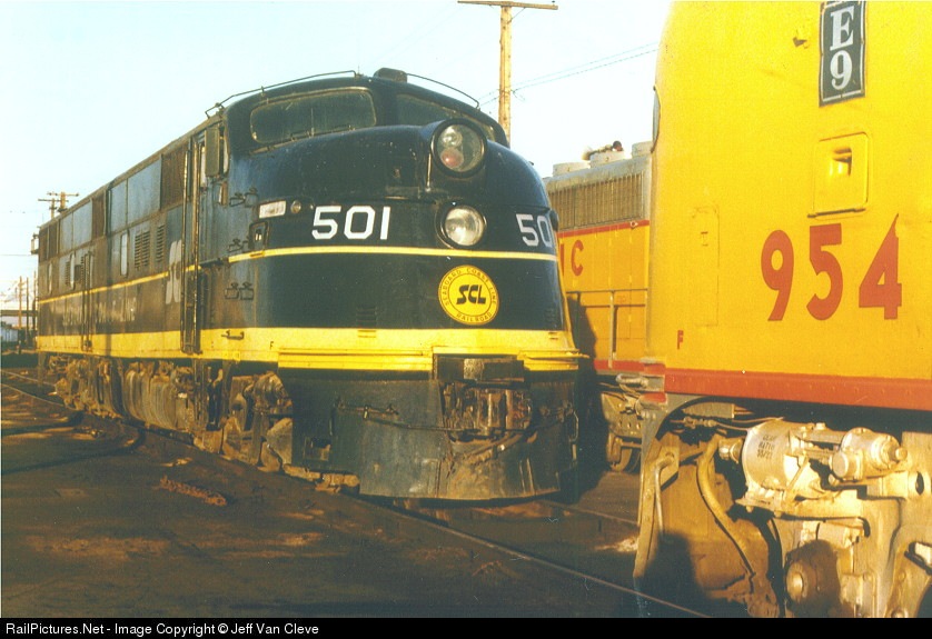 SCL 501 was ex-ACL 501, nee ACL 50, built as an E3A in 11/39, reclassed as E6A, traded in on a U36B in 11/71, moved to Wisconsin 11/79. Kodak ISO 200 print, Leica M3, Summicron 50mm f2
