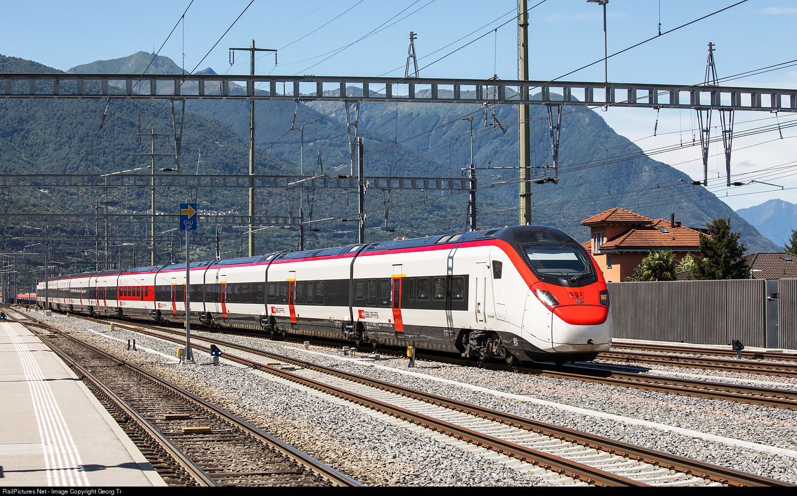 | "Giruno" highspeed train RABe 501 # 006 of the SBB is running the EC 358 from Chiasso via Lugano-Bellinzona-Arth Goldau-Lucerne-Olten to Basel SBB, entering Giubiasco from the Ceneri north ramp. The cross border traffic of the Eurocity trains between Italy and Switzerland will restart from june 29th after the coronavirus shutdown, so this train is running from Chiasso instead of Milan only. |